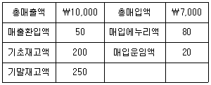 도소매업을 영위하는 (주)한국의 재고 관련 자료가 다음과 같을 때, 매출이익은?