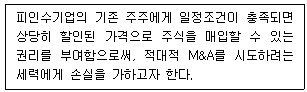 적대적 M&A의 방어전력 중 다음에서 설명하는 것은?