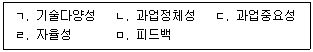 직무특성모형에서 중요심리상태의 하나인 의미충만(meaningfulness)에 영향을 미치는 핵심직무차원을 모두 고른 것은?