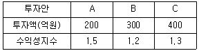 K사는 현재 A, B, C 투자안을 검토하고 있다. 모든 투자안의 내용연수는 서로 동일하고, 투자액은 투자 시점에서 일시에 발생하며 투자 이후엔 현금유입이 발생한다. 투자안의 투자액 및 수익성지수(PI)가 다음과 같은 경우 투자안의 순현재가치(NPV)를 비교한 것으로 옳은 것은?