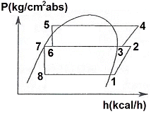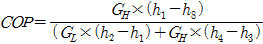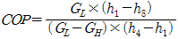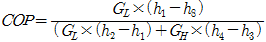 다음 그림은 2단 압축, 2단 팽창 이론 냉동사이클이다. 이론 성적계수를 구하는 공식으로 옳은 것은? (단, GL 및 GH는 각각 저단, 고단 냉매순환량이다.)