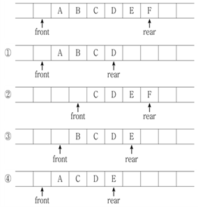다음은 front 다음 위치부터 rear 위치까지 유효한 원소가 들어있는 선형 큐를 보여준다. 두 개의 원소를 제거한 후 큐의 상태는?