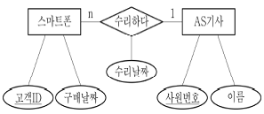 다음 그림은 스마트폰 수리와 관련된 E-R 다이어그램의 일부이다. 이에 대한 설명으로 옳지 않은 것은?