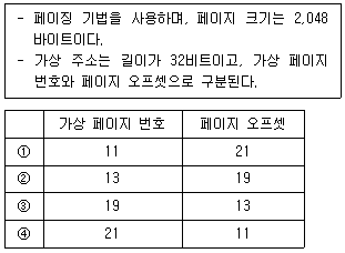 다음 조건을 만족하는 가상기억장치에서 가상 페이지 번호(virtual page number)와 페이지 오프셋의 비트 수를 바르게 연결한 것은?