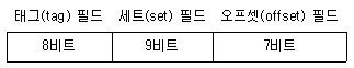 2-way 집합 연관 사상(set-associative mapping) 방식을 사용하는 캐시 기억장치를 가진 컴퓨터가 있다. 캐시 기억장치 접근(access)을 위해 주기억장치 주소가 다음 세 필드(field)로 구분된다면, 캐시 기억장치의 총 라인(line) 개수는?