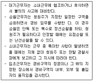 청원경찰법령상 청원경찰의 근무요령에 관한 설명으로 옳은 것은 모두 몇 개인가?