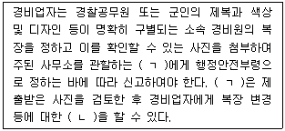 경비업법령상 경비원의 복장에 관한 내용이다. ( )에 들어갈 내용이 바르게 연결된 것은?