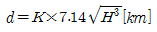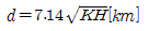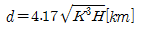다음 중 전파통신이 가능한 가시거리(Line-of-Sight)를 구하는 공식은? (단, d는 가시거리, K는 지구의 곡률에 의한 보정 계수, H는 안테나의 높이[m])