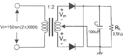다음 평활회로에서 직류출력전압은 약 얼마인가?