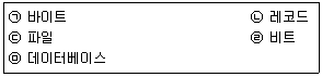 정보표현의 단위가 작은 것부터 큰 순으로 올바르게 나열된 것은?