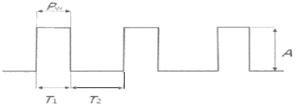 다음 그림은 이상적인 펄스를 나타낸 것이다. 펄스의 듀티 싸이클(Duty Cycle) D의 식으로 옳은 것은?