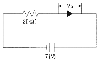 다음 그림과 같이 2[kΩ]의 저항과 실리콘(Si)다이오드의 직렬 회로에서 다이오드 양단의 전압 크기는 얼마인가?