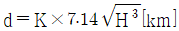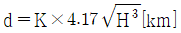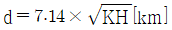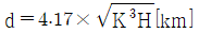 전파통신이 가능한 가시거리(Line-of-Sight)를 구하는 공식은? (단, d는 가시거리, K는 지구의 곡률에 의한 보정 계수, H는 안테나의 높이[m])