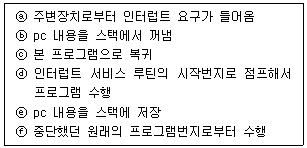 다음은 인터럽트 처리과정을 나타낸 것이다. 처리과정의 순서를 올바르게 나열한 것은?