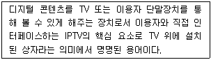 IPTV 서비스의 구성요소 중 보기의 설명에 대한 것으로 적절한 것은?