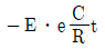 다음 회로에서 기전력 E를 가하고 S/W를 ON하였을 EO 저항 양단의 전압 VR은 t초 후 어떻게 표시되는가?