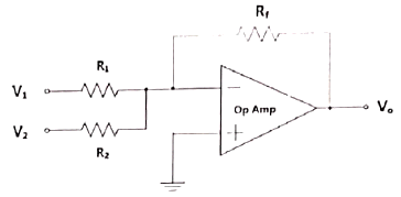 다음 연산증폭기에서 R1=R2=100[kΩ], Rf=25[kΩ]이고, V1=2[V], V2=4[V]일 때 출력전압 Vo