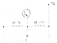 다음 그림과 같은 회로에서 결합계수가 0.5이고, 발진주파수가 200[kHz]일 경우 C의 값은 얼마인가? (단, π=3.14 이고, L1=L2=1[mH]로 기징한다.)