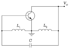 다음 그림과 같은 회로에서 결합계수가 0.5이고, 발진주파수가 200[kHz]일 경우 C의 값은 얼마인가? (단, π=3.14이고, L1=L2=1[mH]로 가정한다.)