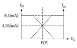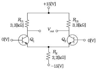 다음 차동증폭 회로에서 주어진 전압 및 전류 조건에 맞는 직류 IV-곡선으로 맞는 것은? (IRC1=IRC2=3.25[mA], VE=0.7[V]이다.)