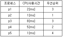 SJF(Shortest-Job-First) 정책으로 관리하는 시스템에 프로세스 p1, p2, p3, p4, p5가 동시에 도착했다. 다음 표와 같이 프로세스가 정의되었을 때 p3의 반환시간(Turn-Around Time)은 얼마인가?