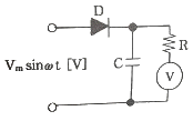 그림과 같이 교류의 전압을 직류용 가동코일형 계기를 사용하여 측정하였다. 전압계의 눈금은 몇 V인가? (단, 교류전압의 최대값은 Vm이고, 전압계의 내부저항 R의 값은 충분히 크다고 한다.)