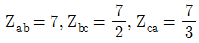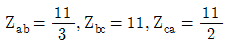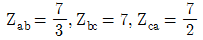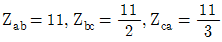 그림과 같은 Y결선 회로와 등가인 △결선 회로의 Zab, Zbc, Zca값은?