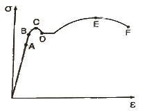 그림과 같은 탄소강의 응력(σ)-변형율(ϵ)선도에서 각 점에 대한 내용으로 적절하지 않은 것은?