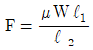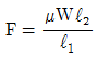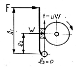 그림의 단식블록 브레이크에서 브레이크에 가해지는 힘(F)은? (단, W는 브레이크 드럼과 브레이크 블록 사이에 작용하는 힘, μ는 마찰계수, f는 마찰력이다.)