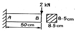 그림과 같은 외팔보에 2kN의 집중하중이 작용 할 때, 지지점 A에서의 굽힘응력은 약 몇 MPa인가? (단, 길이 50cm, 8.5cm×8.5cm)
