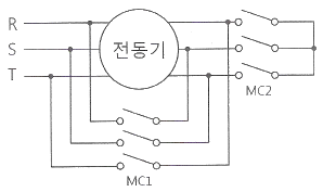 그림은 3상 유도전동기의 기동제어 회로이다. 기동 및 운전시 MC1과 MC2의 설명 중 옳은 것은?