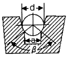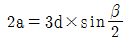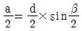 그림은 승강기 권상 시브의 언더컷 홈 모양이다. 홈의 깎인 면 a의 값을 구하는 식으로 옳은 것은?