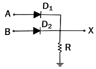 그림의 회로는 다이오드와 저항을 사용하여 무접점 논리 시퀀스 회로를 구성한 것이다. 이 회로는 어떤 논리소자의 역할을 하는가?