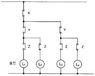 그림과 같은 회로에서 해당되는 램프의 식으로 옳은 것은?