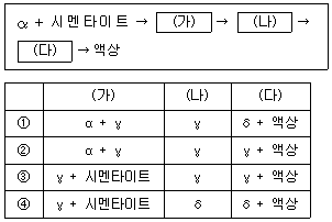 다음은 탄소 0.6%를 함유하고 있는 강을 준평형상태 조건에서 상온부터 서서히 가열할 때, 발생하는 조직의 변화를 나타낸 것이다. (가), (나), (다)에 들어갈 말을 바르게 짝 지은 것은? (단, 탄소는 Fe3C로 존재한다)