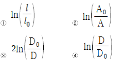 금속시편의 체적은 소성영역에서 일정하게 유지된다. 원기둥 형태의 최초 시편은 길이 ㅣ0, 단면적 A0, 직경 D0를 갖고 있으며, 균일변형 중 시편의 길이가 l, 단면적이 A, 직경이 D일 때, 진변형률 식으로 옳지 않은 것은?