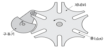 그림과 같은 제네바 기어(Geneva gear)에 대한 설명으로 옳지 않은 것은?