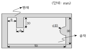 그림과 같이 판재를 블랭킹할 때 필요한 최소 펀치 하중은? (단, 펀치와 판재 사이 마찰은 없고 전단이 되는 면은 판재에 수직하며, 판재의 두께는 1mm, 전단강도는 2kgf/mm2이고 π는 3으로 계산한다)