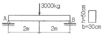 다음 그림과 같은 단순보의 중앙에 집중하중이 작용할 때 단면에 생기는 최대 전단응력은 얼마인가?