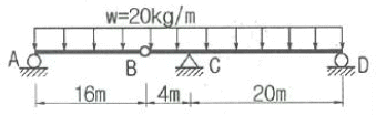 그림과 같은 게르버보의 C점에서 휨모멘트 값은?