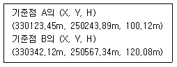 터널 양 끝단의 기준점 A, B를 포함해서 트래버스 측량 및 수준측량을 실시한 결과가 아래와 같을 때, AB간의 경사거리는?