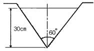 그림과 같이 삼각위어의 수두를 측정한 결과 30cm이었을 때 유출량은? (단, 유량계수는 0.62이다.)