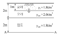 그림과 같은 지반에서 포화토 A-A면에서의 유효응력은?