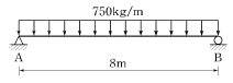 그림과 같은 등분포 하중에서 최대 휨 모멘트가 생기는 위치에서 휨응력이 1200kgcm라고 하면 단면계수는?