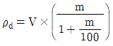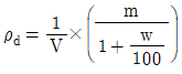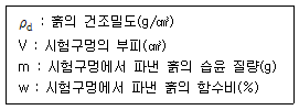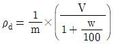 아래 기호를 아용하여 현장밀도시험의 결과로부터 건조밀도(ρd)를 구하는 식으로 옳은 것은?