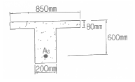 아래 그림과 같은 T형보가 있다. 이 보의 등가직사각형 응력블록의 깊이(α)는?(단, fck =24MPa, fy =400MPa, As =3970mm2)