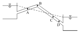 그림과 같은 역사이폰의 A, B, C, D점에서 압력수 두를 각각 PA, PB, PC, PD라 할 때 다음 사항 중 옳지 않은 것은? (단, 점선은 동수경사선으로 가정한다.)