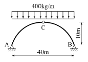 그림과 같은 3-Hinge 아치의 수평반력 HA 는 몇 tf인가?