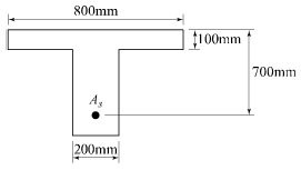 그림과 같은 T형 단면의 보에서 등가직사각형 응력블록의 깊이(a)는? (단, fck=28MPa, fy=400MPa, As = 3855mm2)