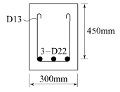 그림과 같은 단철근보의 공칭전단강도(Vn)는? (단, 철근 D13을 수직 스터럽으로 사용하며, 스터럽 간격은 300mm, 철근 D13 1본의 단면적은 127mm2, fck=24MPa, fy=400MPa이다.)